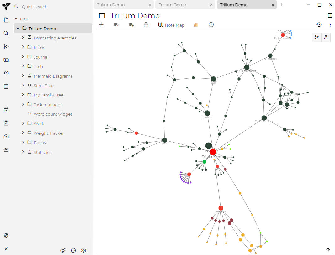 Note map is a visualisation of connections between notes.